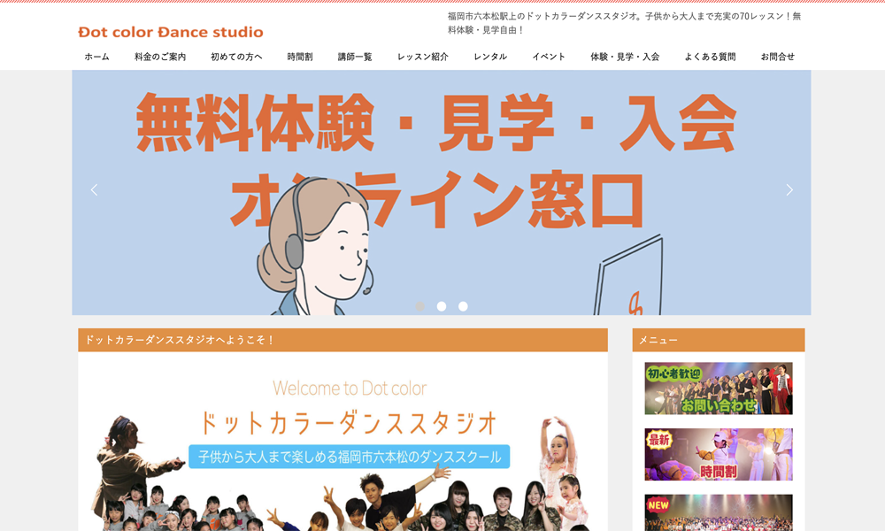 こちらのスタジオは、**ドットカラーダンススタジオ**は福岡市中央区六本松にあるダンススクール&レンタルスタジオで、初心者〜上級者まで幅広いレッスンを揃えているのが特徴です。子どもから大人まで参加できるヒップホップ、K-POP、ジャズ、ロックなど多ジャンルのクラスがあり、無料体験や見学も可能でダンスの入口として通いやすいです。レンタルスタジオは駅から徒歩1分の好立地で、A・B・Cの複数スタジオがあり、鏡・音響・バレエバーなど練習に必要な設備が整っています。自主練習や少人数のクラス、イベント練習などにも使え、気軽にダンスを楽しめるスタジオです。